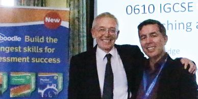 Librat tanë të matematikës dhe të shkencës janë kryesisht nga Cambridge University Press ose nga Oxford University Press. Karakteristikë e tyre është që ato janë shkruar për programet e Kembrixhit dhe janë miratuar (endorsed) nga Cambridge Assessment International Education. Në foto Ron Pickering, autor i Biologjisë së Oksfordit për programin Cambridge IGCSE, një nga librat me të cilat ne kemi mësuar klasën e nëntë dhe të dhjetë, në Konferencën e Shkollave të Kembrixhit.